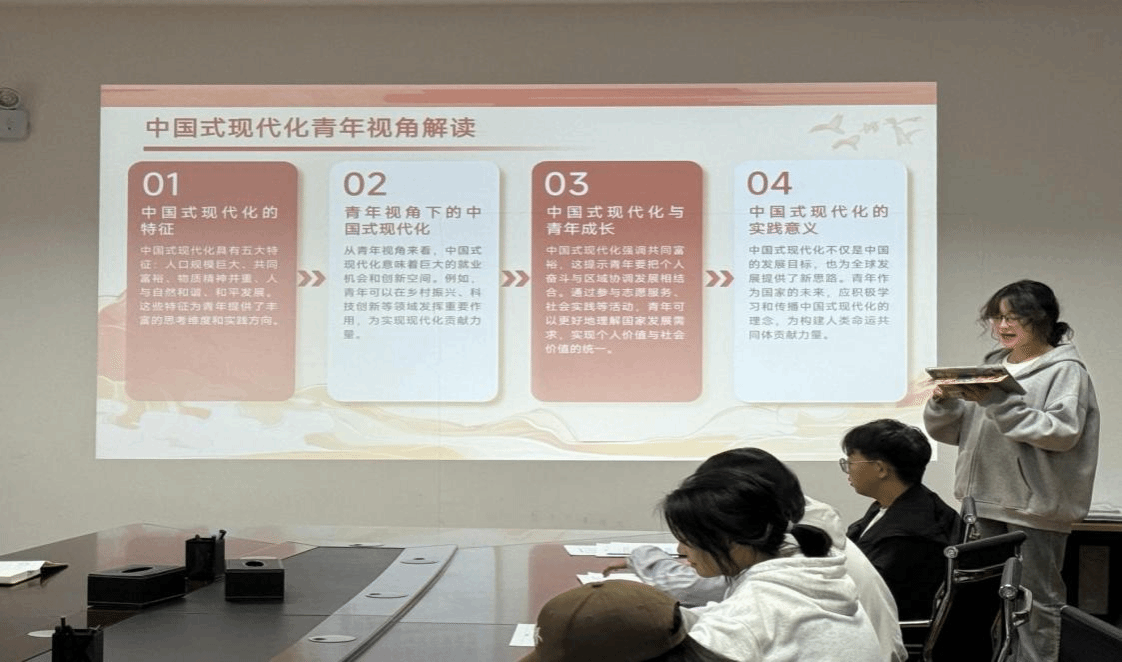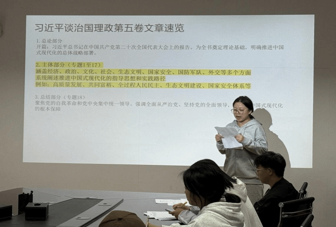 十一位学生主讲人围绕《习近平谈治国理政》(第五卷)专题一“以中国式现代化全面推进中华民族伟大复兴”的研读心得进行展示汇报。